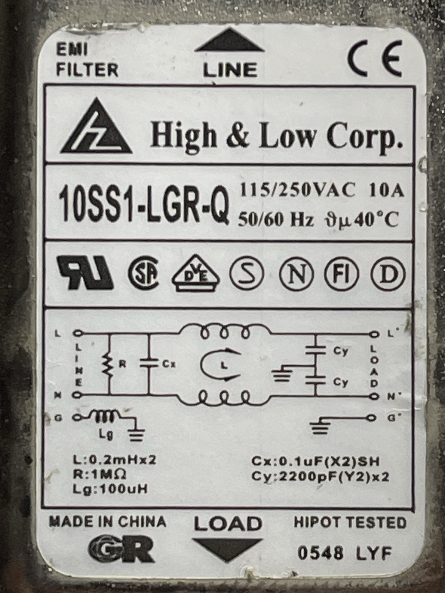 جک ورودی برق فیلتر دار 10SS1-LGR-Q