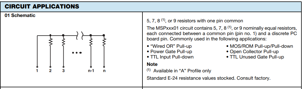 مقاومت آرایه ای 220 کیلو اهم 5 پین پایه مشترک